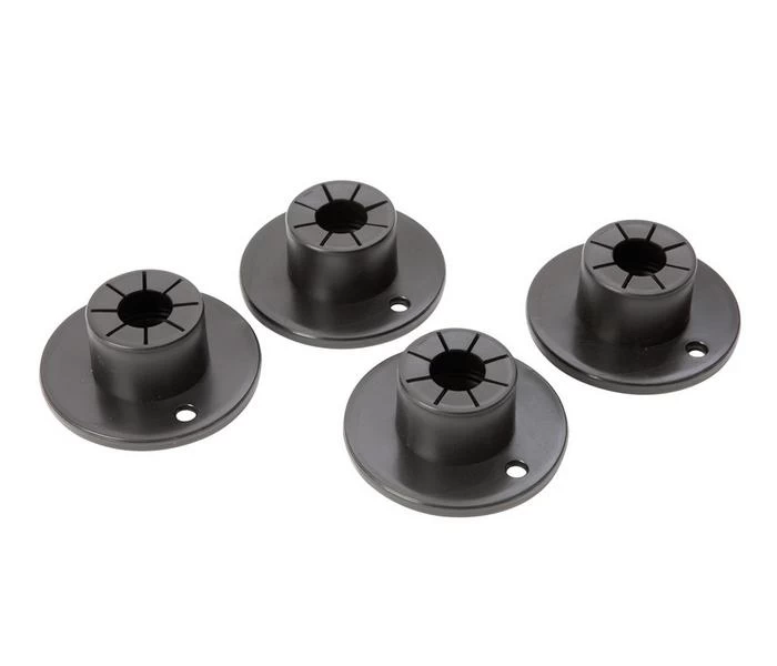 Set van 4 kunststof stabilisatoren om ervoor te zorgen dat de voeten van de opstapjes niet weg kunnen zakken in de grond. Ook te gebruiken als voetje voor tentstokken, tafelpoten, stoelpoten, etc. Diameter 7,7cm, diameter opening: 1,9cm.