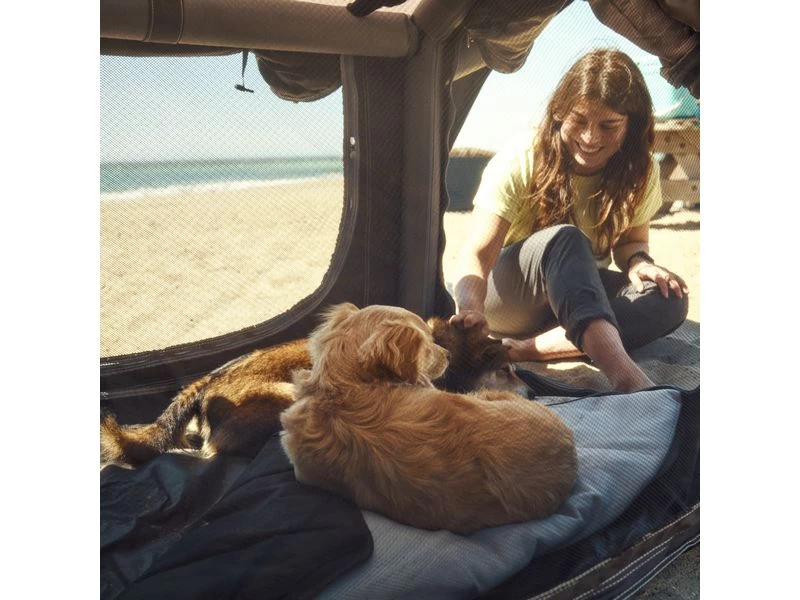 Perfect voor onderweg, voor dagtrips met de auto en vakanties in de buitenlucht. De Dometic K9 80 AIR is gemaakt van een lichte, duurzame stof die garant staat voor comfort en veiligheid voor jouw hond. Deze veelzijdige bench is makkelijk schoon te maken, compact in te pakken en heeft een draagbeugel, zodat je hem makkelijk mee kan nemen. Zo kan jouw hond (en/of ander dier) altijd mee op avontuur.