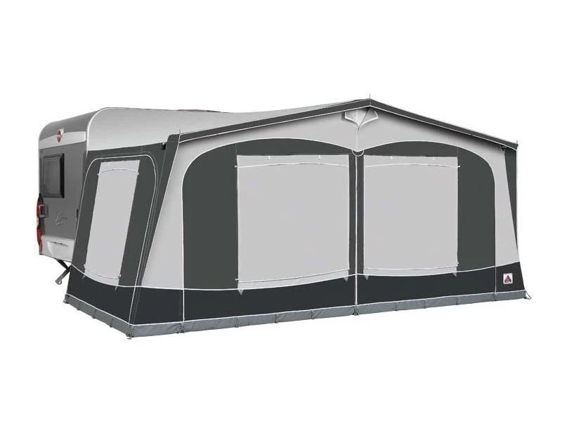 De Garda 240 De Luxe biedt verrassend veel ruimte voor een ongekend voordelige prijs. Overtuig uzelf en vergelijk dit model met andere in prijs vergelijkbare voortenten. U zult tot de conclusie komen dat de Garda 240 De Luxe méér biedt voor minder geld. De Garda 240 De Luxe, die geheel van het sterke 240 gr/m2 Ten Cate All Season tentdoek is gemaakt, is ook uitermate geschikt om als seizoensvoortent te gebruiken. Speciaal voor de seizoenkampeerder is de Garda 240 De Luxe uitgevoerd met afsluitbare raamkleppen. U kunt kiezen uit twee kleurcombinaties: blauw/grijs en antraciet/grijs.