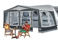 De Multi Nova Excellent is een combinatie van luifel en voortent. Deze multifunctionele luifel/voortent is gemaakt van topkwaliteit Ten Cate All Season tentdoek. Alle wanden zijn naar wens in- en uitritsbaar en de beide zijwanden zijn voorzien van een fraai gestileerd halfrond afsluitbaar gaasvenster. De voorwand heeft twee deuren. Door één deur gesloten te laten, afhankelijk van de plaats van de deur van de caravan, creëert u aan één kant een ruime zithoek. Deze schitterende luifel/voortent wordt standaard geleverd met het unieke, snel opzetbare, aluminium EasyGrip Quick System frame of tegen meerprijs met het nieuwe supersterke lichtgewicht Fibre Tech glasfiber frame. U kunt kiezen uit twee kleurcombinaties: blauw/grijs en antraciet/grijs.