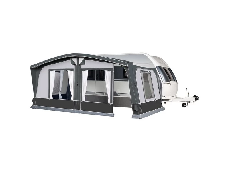 De derde generatie opblaasbare voortenten van Dorema. Biedt in zijn moderne ronde vorm, een prachtig beeld op de kampeerplek. De voortent is ongelooflijk stabiel, extreem snel op te bouwen en perfect afgestemd op de caravan, waardoor u met trots aan uw vakantie kan beginnen. Het EAF-systeem is geperfectioneerd bij de Octavia air. De ronde dakvorm maakt de Octavia air nog stabieler in weer en wind en is daardoor zeer geschikt voor kamperen aan de Europese kusten. Natuurlijk kunt u de Octavia air uitbreiden met een uitbouw en de voortentluifel Octavia. De standaard uitrusting laat nauwelijks iets te wensen over.