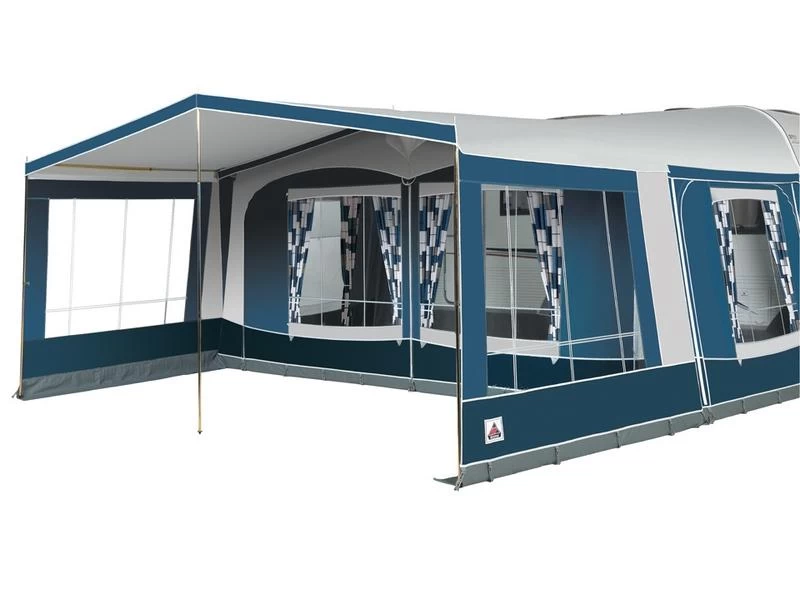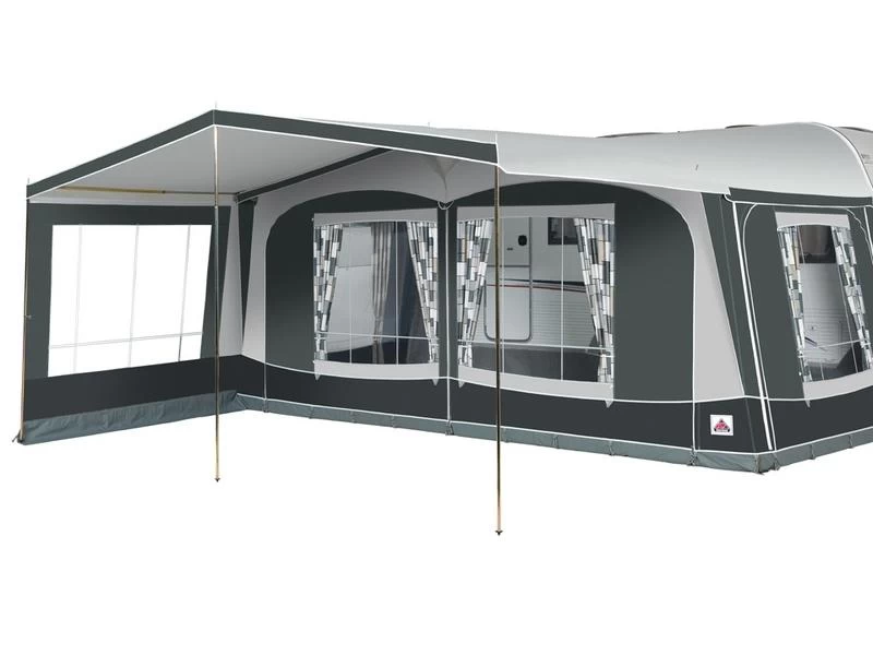 Deze luxe universele voortentluifels zijn speciaal ontworpen voor bevestiging aan de voorzijde van uw voortent. De Locarno luifel is voorzien van uitritsbare zijwanden met raam. Deze luifels zijn gemaakt van het sterke Ten Cate All Season tentdoek. Het optionele luifelframe zorgt voor een stabiele constructie. De Locarno luifel past aan ieder merk en type voortent en worden bevestigd op de petluifelstokjes van de voortent. Een ruime overlapping zorgt voor een perfecte aansluiting op de voortent. In verband met het universele karakter van deze luifels dient u zelf nog enkele tentogen te monteren. Een setje tentogen met bevestigingsmateriaal wordt standaard meegeleverd.