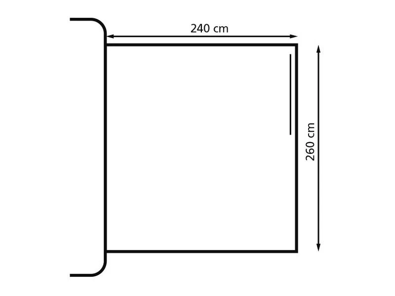 De luifel is voorzien van een pees voor de bevestiging aan de bus maar kan ook met de dakstang bevestigd worden. De luifel wordt incl. 3 luifeltentstokken, dakstang en klemmen geleverd.