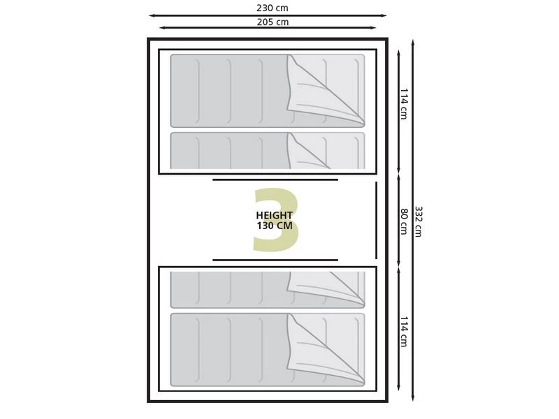 Binnentent: 2 x 205 x 114 cm