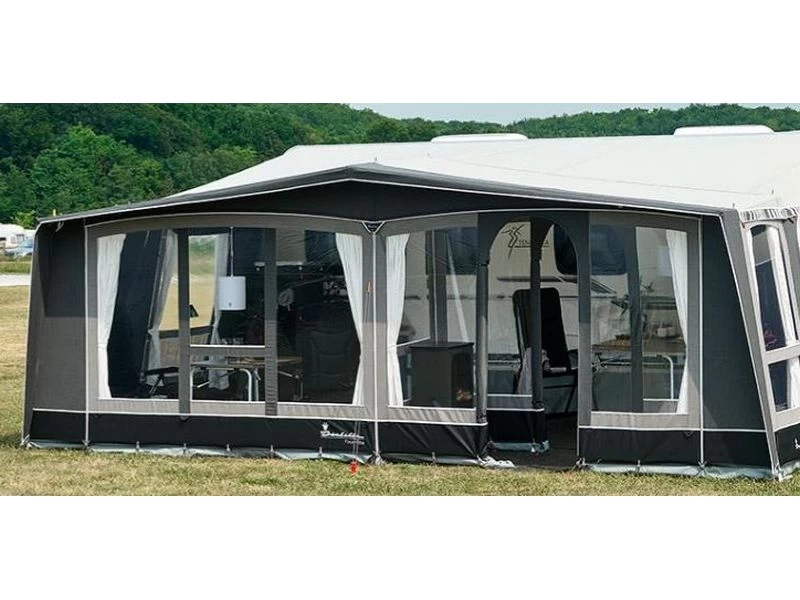 Extra frontdeel met deur voor Forum Etna. Als je een extra frontdeel koopt, kun je een kleine entree maken waardoor alles nog flexibeler wordt in je Forum tent.