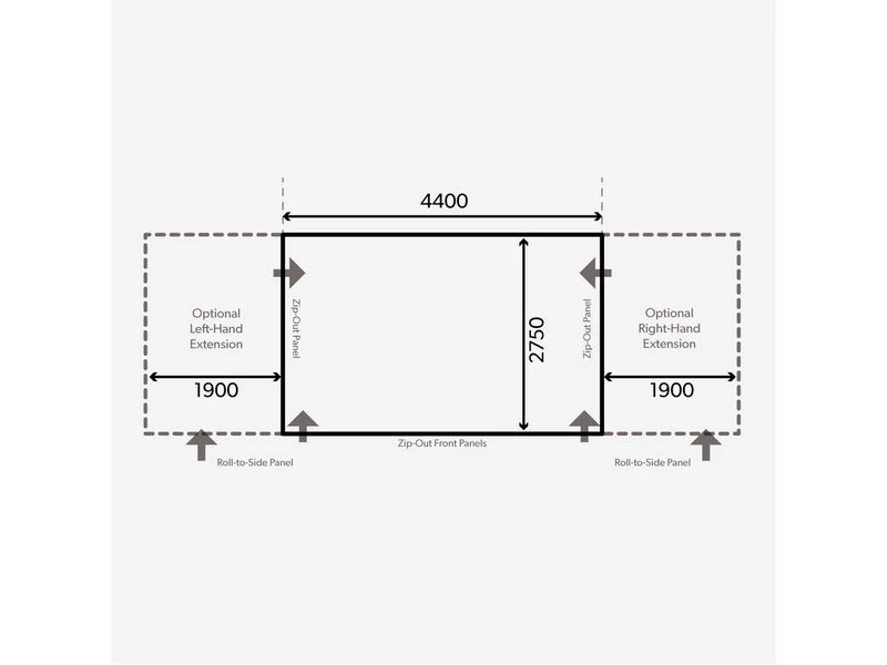 Footprint voor extension (ondergrondzeil aanbouw links en/of rechts)