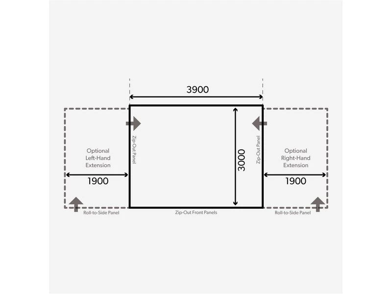 QuickPitch™ scheerlijnen, naar opzij oprolbare voorwanden, Weathershield™ Pro materiaal en één oppomppunt zijn een aantal van de opvallende eigenschappen waardoor de Grande AIR Pro 390 de perfecte aanvulling op jouw caravan is. Dankzij de royale diepte van 3 meter en het Dual-Pitch™ dak ontstaat er een ruimtelijk gevoel. Rits het optionele verlengstuk vast aan één van beide of beide zijden voor extra leefruimte.