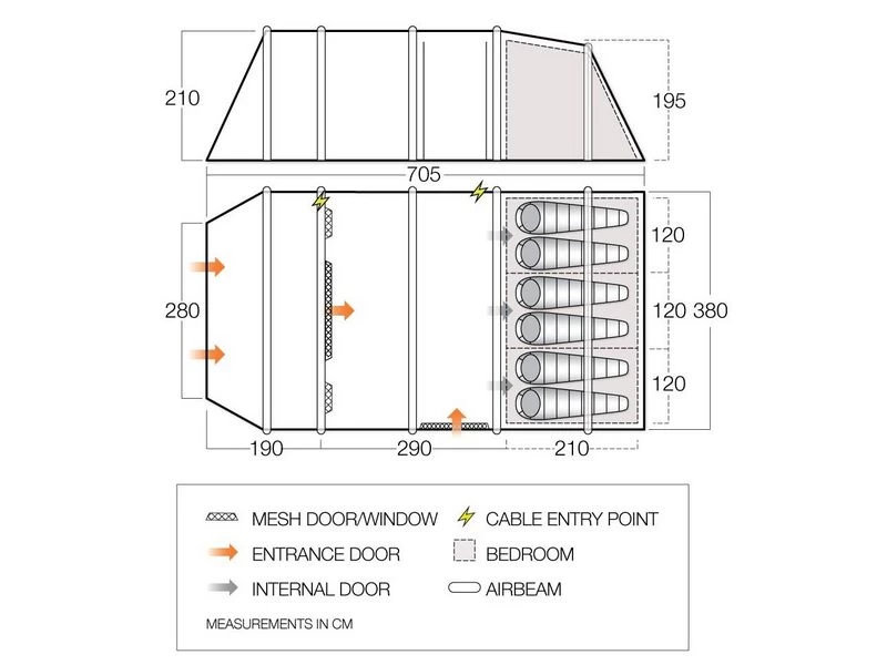 De airbeams in een Vango AirBeam tent zin van een sterke en rigide structuur zodat u deze tent snel en gemakkelijk kunt opzetten.